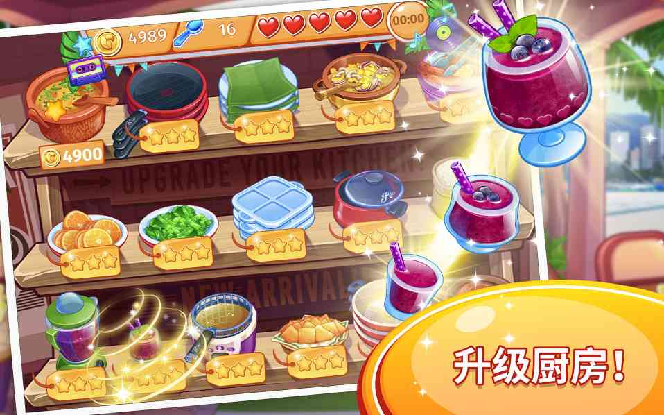 出道即巅峰。 为了保证完成每个级别的任务和挑战,您的餐厅需要更多升级。玩家可以升级炉灶和厨房用具的数量,以便能够一边烹饪许多菜肴。为您升级完成一道菜的时间,并加快速度。还有啊,您还可以使用打卡器等物品,在需要时为您提供帮助。当您从游戏商店兑换奖金和星星时可以获得您想要升级的物品和物品。
