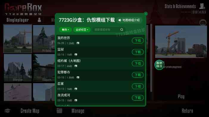您可以在暴力沙盒重制中创建和下载定制内容,如“地图”、 离了大谱。 “模块”等,从而拥有无限乐趣!