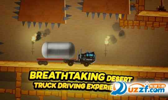 在这个卡车驾驶游戏中, 你会越过小山,山和悬崖,甚至是通过隧道或工厂的管道。小心——爆炸的电线,生锈的桶和移动的建筑!如果你遇到沙暴,你的卡车会开得慢一些。但是不要放弃, 永远前进!